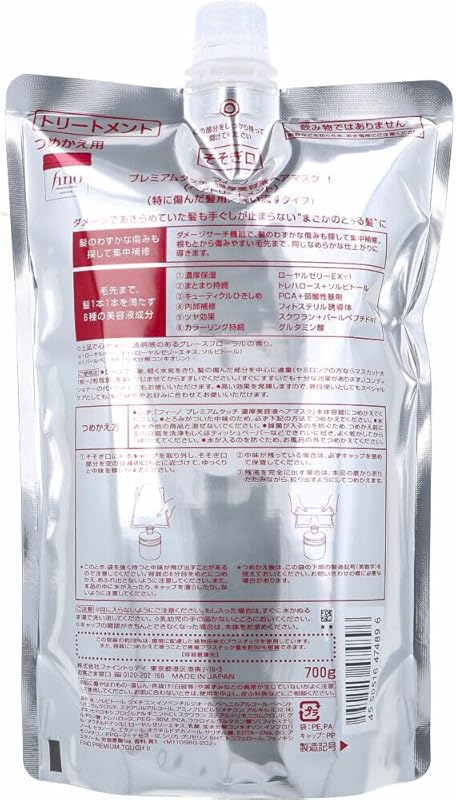 Discover the transformative power of the Fino Premium Touch Hair Treatment Mask, a luxurious solution for damaged hair. This 700g x 2 refill set, shipped directly from Japan, offers deep nourishment and repair, making it perfect for those searching for effective hair care. With free worldwide shipping and a 1-month warranty, you can indulge in this revitalizing treatment worry-free. Enriched with Royal Jelly Extract and advanced moisturizing ingredients, this hair mask is designed to leave your locks soft, shiny, and manageable. Experience the luxurious difference with Fino and say goodbye to damaged hair!