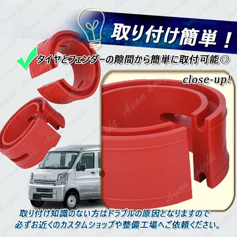 Investing in the Avan Knight Rubber Spacer Set means you can upgrade your suspension without needing to revert to original parts, saving both time and money. This cost-effective solution allows you to enhance your vehicle's ride quality and aesthetic appeal without the high cost associated with suspension overhauls. While installation is simple, we recommend consulting a professional if you have any doubts, as no instruction manual is included with the product.