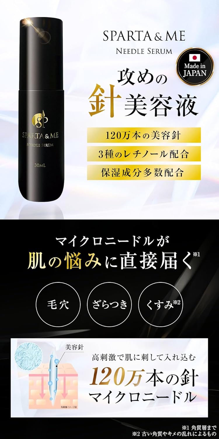Discover the transformative power of SPARTA&ME Advanced Micro-Needle Serum, your ultimate solution for anti-aging skincare. Perfect for women seeking to combat the first signs of aging, this innovative serum combines Retinol and micro-needle technology for deep skin penetration and optimal hydration. Enjoy free worldwide shipping directly from Japan, along with a 1-month warranty for peace of mind. Elevate your skincare routine with this unique formula that nourishes all skin types and promotes a youthful, radiant complexion. Experience the luxury of Japanese skincare and unveil your healthiest skin yet!