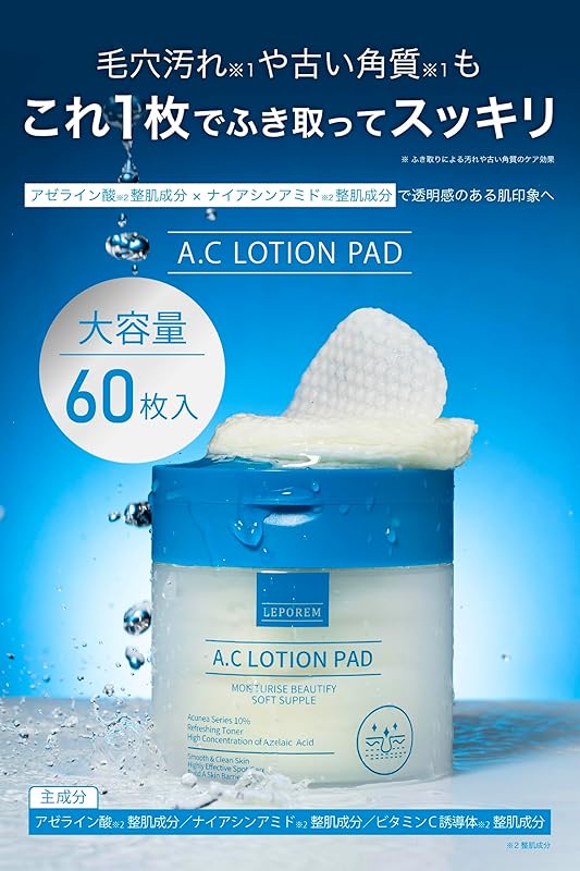 Discover radiant skin with LEPOREM A.C Toner Pads, featuring 60 sheets designed for rejuvenation and clarity. Infused with high concentrations of azelaic acid, niacinamide, and vitamin C derivatives, these dual-sided pads gently exfoliate while delivering deep hydration. Shipped directly from Japan, you can enjoy free worldwide shipping and a 1-month warranty, ensuring your satisfaction. Perfect for all skin types, these plant-based toner pads seamlessly fit into your skincare routine, making it easier than ever to achieve a glowing complexion. Elevate your daily regimen with the exceptional quality of LEPOREM and experience the beauty of Japanese skincare.