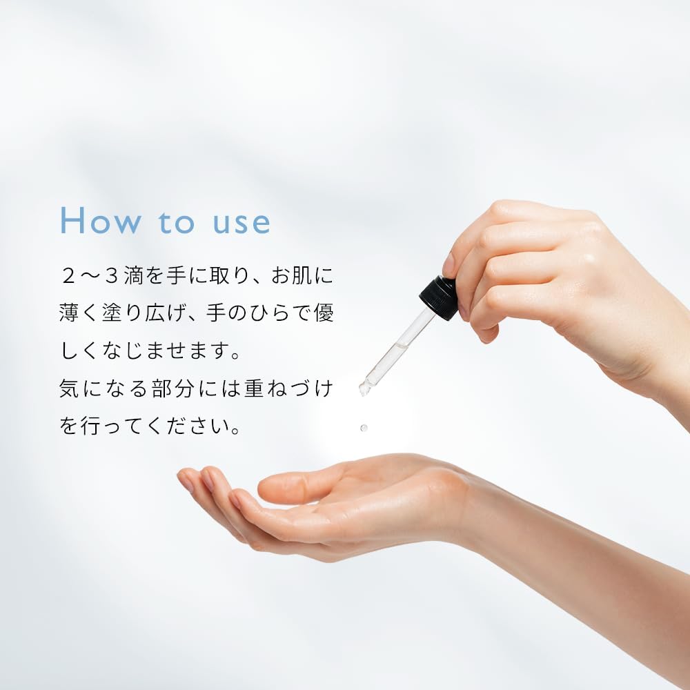 - Gently massage the serum onto your face and neck in upward circular motions.