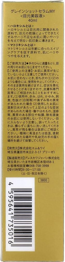 Discover the transformative power of the Grain Shot Eye Serum, designed to elevate your eye care routine. This luxurious 40ml treatment, crafted in Japan, combines two types of Vitamin E pearls with real gold to rejuvenate and brighten your under-eye area. Say goodbye to dryness and dullness with a fast-absorbing, lightweight formula that hydrates and firms delicate skin. Enjoy free worldwide shipping and a one-month warranty on your purchase, ensuring a risk-free experience. Perfect for those seeking an effective solution for tired eyes, this serum is a must-have for anyone passionate about skincare. Experience the difference today!