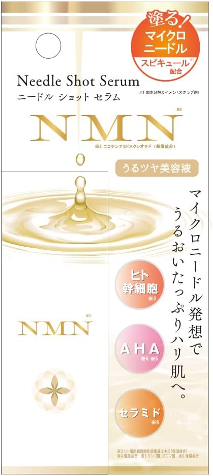Discover the transformative benefits of Needle Shot Serum NMN (20mL), a premium beauty serum shipped directly from Japan. Designed for normal skin types, this revolutionary serum features natural micro-needles that deliver NMN (Nicotinamide Mononucleotide) deep into your skin, boosting hydration and fighting signs of aging. With free worldwide shipping and a 1-month warranty, this luxurious serum is perfect for achieving plump, radiant skin. Elevate your skincare routine and experience the rejuvenating power of Japanese beauty technology today! Ideal for those searching for effective anti-aging solutions and intense hydration.