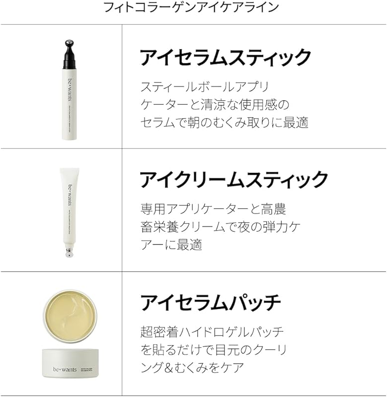 When selecting an eye serum, consider the unique formulation of the BE+WANTS Phyto Collagen Eye Serum Stick. Unlike many traditional eye creams, this serum stick combines the benefits of a serum with the convenience of a stick applicator, making it ideal for busy lifestyles. Additionally, its vegan and fragrance-free formula ensures that it caters to a wider range of skin sensitivities, setting it apart from many competitors. This product is an excellent choice for those seeking effective anti-aging solutions without compromising on ingredient integrity.