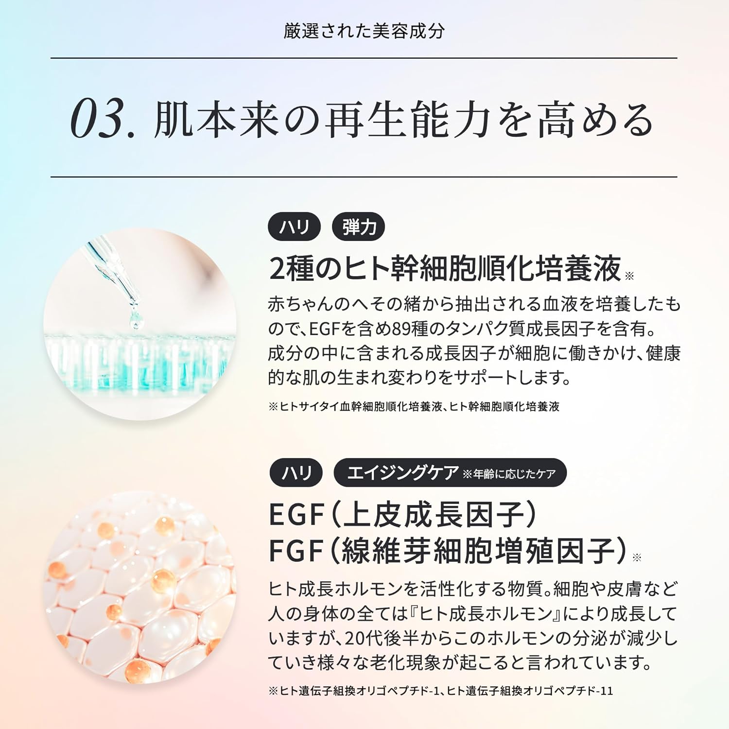 - Powerful Human Stem Cells: Enriched with both Human Adipose Stem Cell Culture Extract and Human Stem Cell Culture Extract, these components are known for their ability to repair skin and retain moisture, combatting signs of aging efficiently.