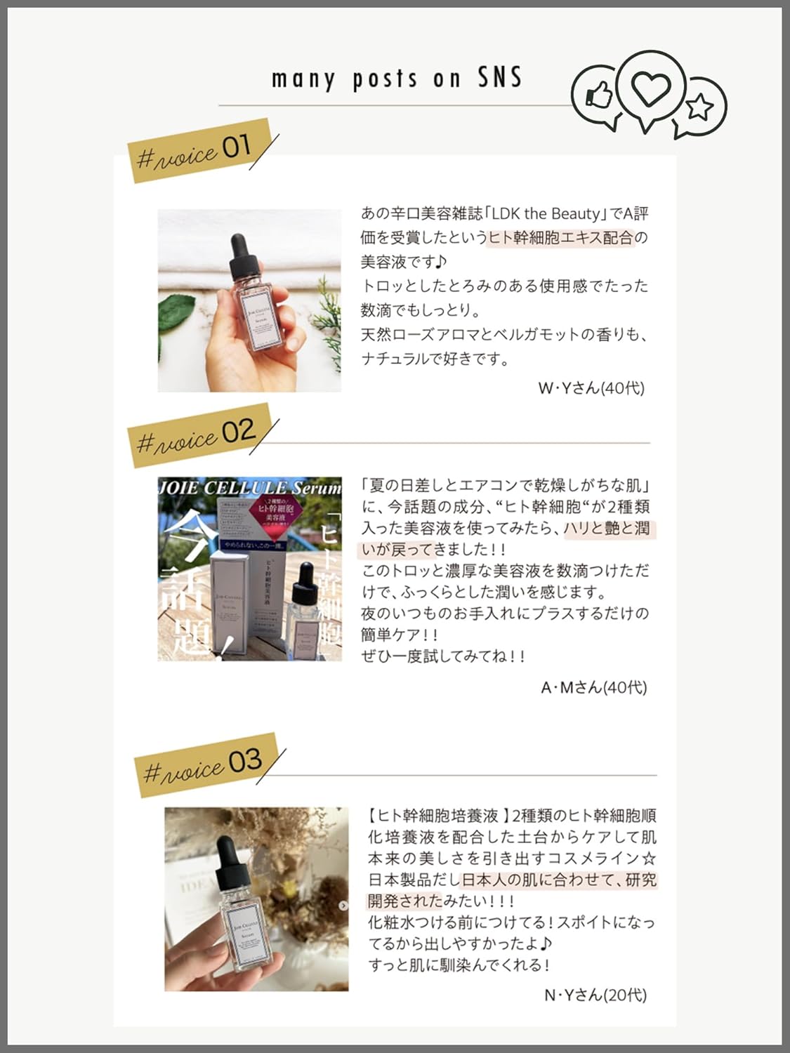 Japanese skincare is renowned for its meticulous attention to detail and commitment to quality. The philosophy behind JOIE CELLULE reflects this cultural ethos, where natural ingredients and innovative technology converge to create effective skincare solutions. The use of human stem cell technology in cosmetics is a testament to Japan's pioneering spirit in the beauty industry, offering cutting-edge formulations that enhance skin health and beauty.