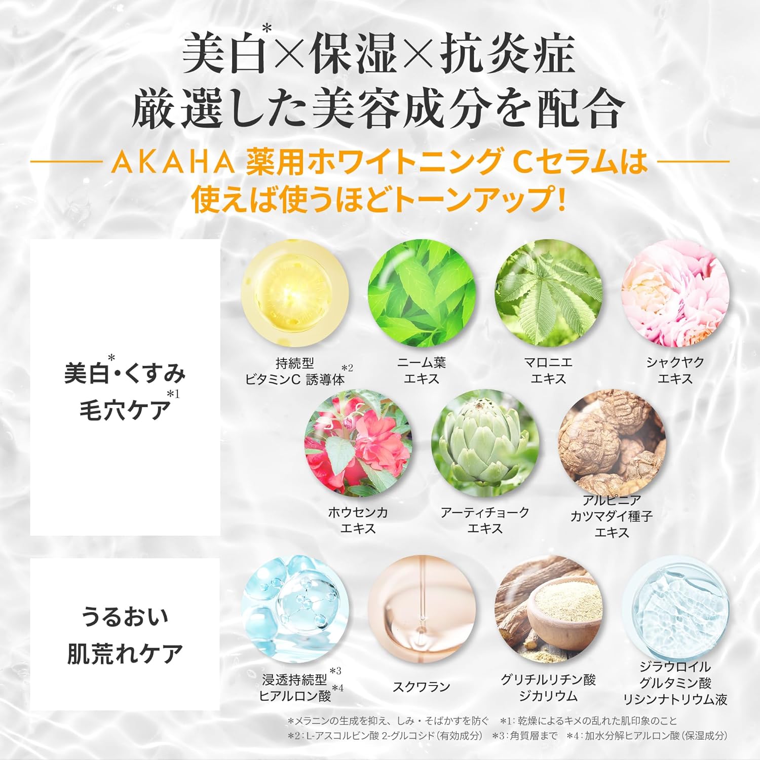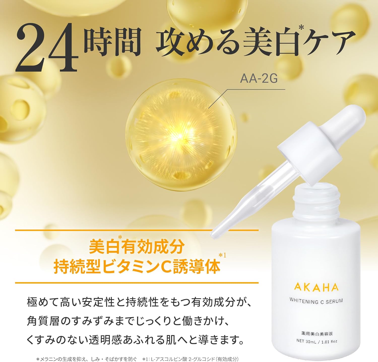 Discover the transformative power of AKAHA Medicated Whitening C Serum, your ultimate solution for achieving a radiant, even complexion. Shipped directly from Japan, this advanced serum harnesses the potency of stable Vitamin C and soothing botanicals to effectively diminish dark spots and refine pores. Enjoy free worldwide shipping and a 1-month warranty, ensuring your satisfaction. Perfect for all skin types, including sensitive and dry skin, this luxurious serum not only brightens but also deeply hydrates for a luminous glow. Elevate your skincare routine and embrace your natural beauty with AKAHA today!