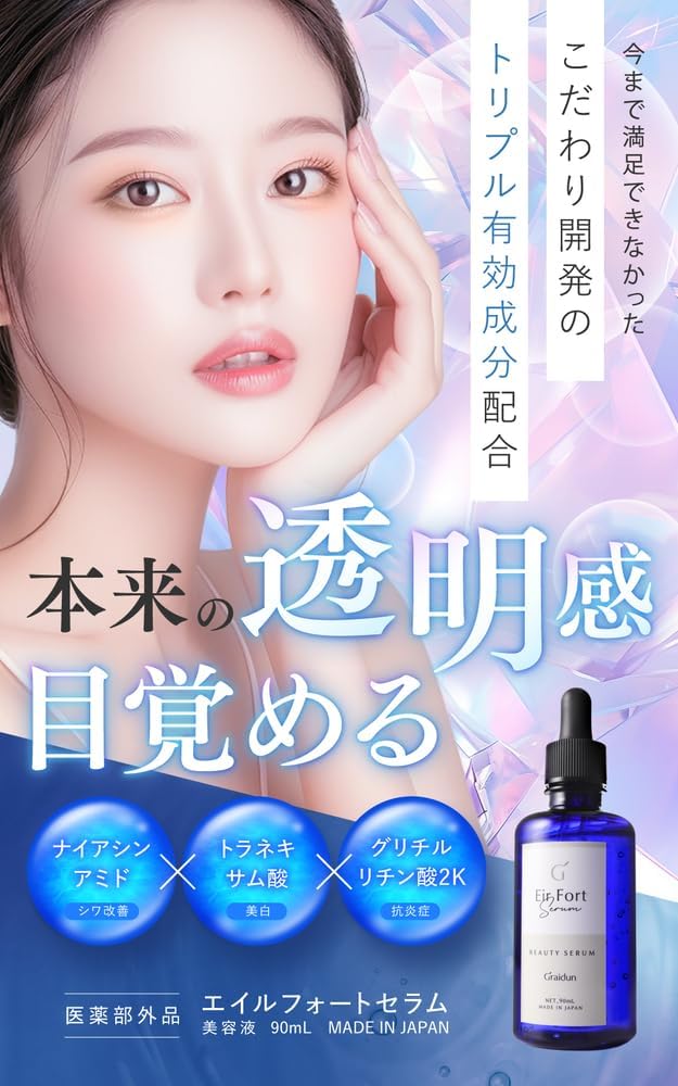 Discover the transformative power of the Graidun Ail Fort Serum, a 90ml skincare gem designed for all skin types, especially sensitive skin. This innovative serum, shipped directly from Japan, harnesses the benefits of Niacinamide, Tranexamic Acid, and Glycyrrhizin Acid to effectively combat dryness, uneven texture, and signs of aging. With free worldwide shipping and a 1-month warranty, you can trust in the quality and efficacy of this gentle formula, free from common irritants. Elevate your skincare routine with this luxurious serum and unlock a radiant, glowing complexion. Experience the best of Japanese skincare today!