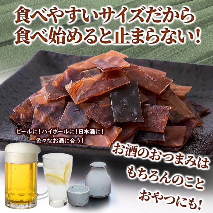Say goodbye to mundane snacks! Our squid chips are cut into manageable, bite-sized pieces, making them perfect for continuous snacking. They pair beautifully with a variety of beverages, from chilled beers to refreshing highballs, making them a versatile choice for any social setting. Whether served as an appetizer or enjoyed solo, these chips elevate your snack game to new heights.