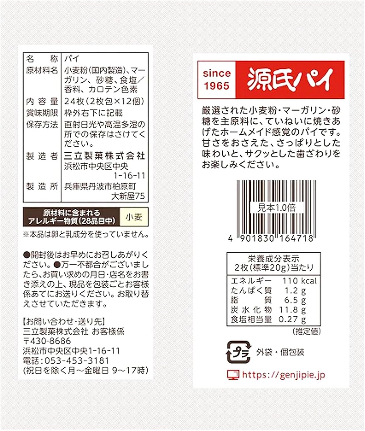 Experience the delightful taste of Japan with the Genji Pie Family Pack from Sanritsu Seika. Since its inception in 1965, Genji Pie has become a beloved snack, cherished for its rich flavors and flaky texture. This family-sized package contains 24 pieces of buttery biscuits, making it an ideal choice for sharing with family and friends or enjoying as a solo treat. Each biscuit is crafted with care, bringing a piece of Japanese culinary tradition into your home.