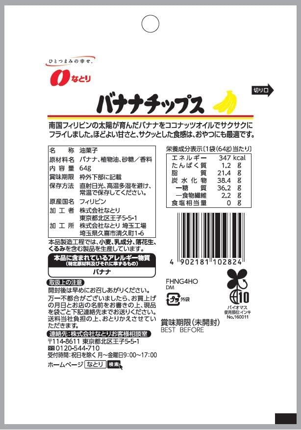 Discover the irresistible taste of Natori Jolly Pack Banana Chips, a deliciously crunchy snack that transports your taste buds to the tropics! Made with high-quality sun-ripened bananas and fried in coconut oil, these 64g packs are perfect for any occasion—whether you're enjoying them solo or adding a tropical twist to your breakfast. Enjoy free worldwide shipping, with each order shipped directly from Japan. Plus, you can shop with confidence knowing that your purchase is backed by a one-month warranty. Elevate your snacking experience today with these top-rated banana chips!