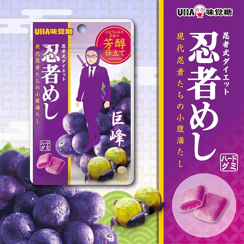 Introducing the Ninja Snack Gummy Treat with Grape Flavor from UHA味覚糖. This delightful 20g pack of gummies is crafted to deliver an extraordinary taste experience. Each chewy piece is packed with the essence of juicy, fresh grapes, making it an irresistible treat for both grape lovers and those seeking a quick energy boost. With a commitment to quality and flavor, UHA brings you a snack that is both satisfying and nutritious.