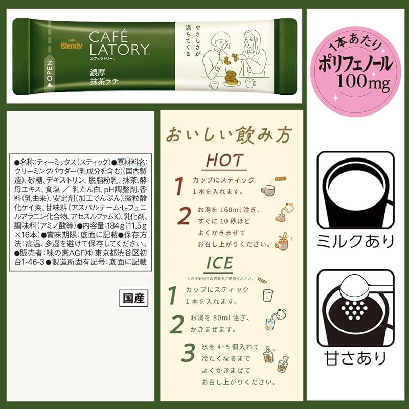 Designed for matcha enthusiasts and newcomers alike, AGF Blendy Café Latory’s Rich Matcha Latte offers a unique café experience at home. Key features include: