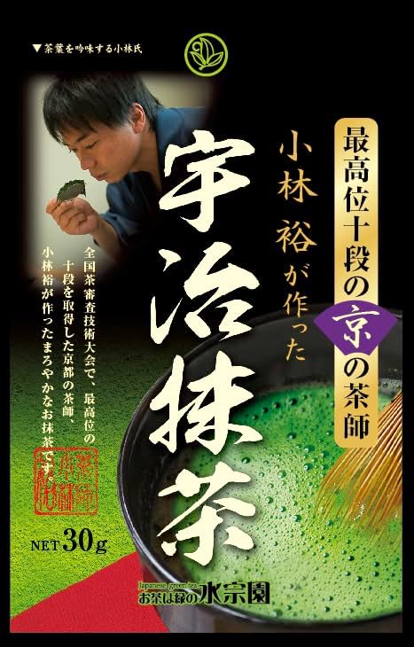Indulge in the rich tradition of Japanese tea with Premium Uji Matcha by Mizusōen Honpo, expertly crafted by the esteemed Kobayashi Yu, a revered tea artisan holding the prestigious Ten-Dan certification. Sourced directly from the lush hills of Uji, Kyoto, this exquisite matcha powder captures the essence of quality and authenticity. Each sip transports you to a serene tea ceremony where nature and craftsmanship unite, offering an immersive experience that delights the senses.
