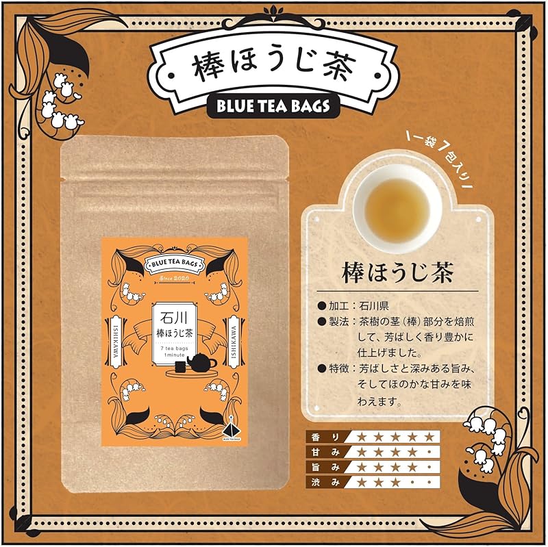 Indulge in the delightful experience of Blue Tea Bags Premium Hojicha Tea. Sourced directly from dedicated tea producers in Ishikawa, this exquisite blend offers a unique twist on traditional Japanese flavors. Each tea bag contains 2 grams of finely roasted hojicha, meticulously crafted to enhance the refreshing flavor and aroma that hojicha lovers admire. With 7 tea bags in each pack, you can enjoy multiple servings of this delightful beverage, perfect for any occasion.