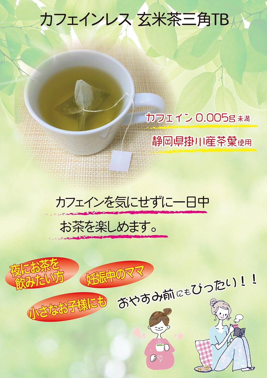 Perfect for tea lovers who are sensitive to caffeine or prefer to enjoy a calming beverage without the stimulating effects, Kukairo's Decaffeinated Genmaicha contains less than 0.005g of caffeine per brewed bag. Indulge in this delightful tea any time of the day or night, allowing you to relax and unwind without worry.
