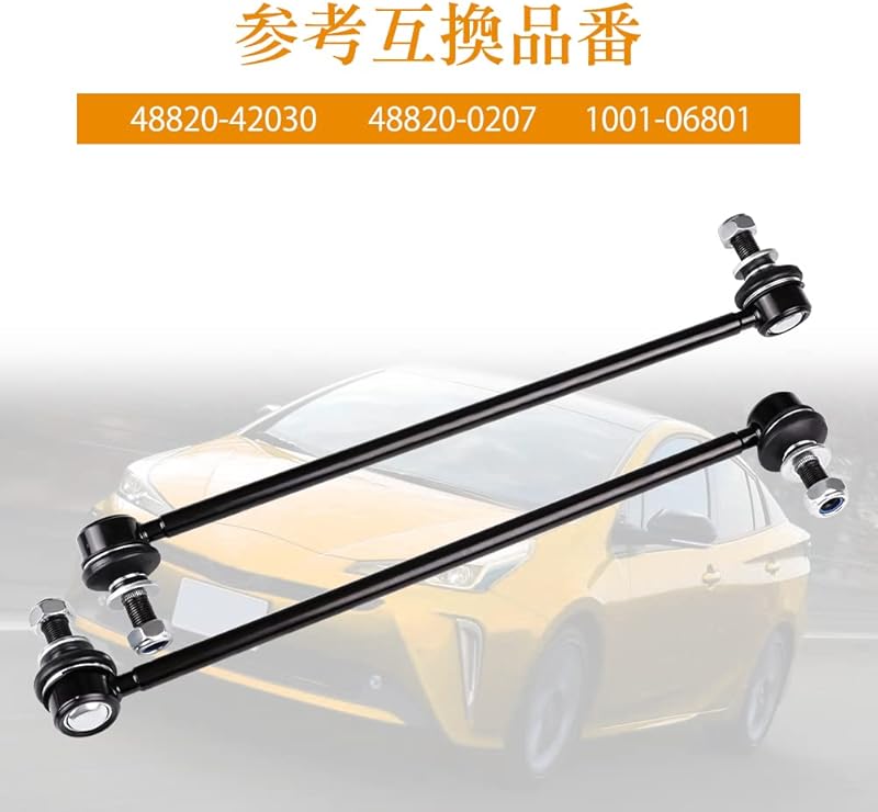 The Stabilizer Link Set for Toyota Cars by ADPOW is an essential component designed to enhance the stability and handling of your vehicle. This set includes two high-quality stabilizer links, expertly engineered to fit a range of Toyota models. Identified by part numbers 48820-42030, 48820-02070, and 1001-06801, these links are compatible with popular models such as the Prius (ZVW30, ZVW40W, ZVW41W), Alphard/Vellfire/Estima (ANH20W, ANH25W, GGH20W, GGH25W, ATH20W, ACR50W, ACR55W, GSR50W, GSR55W, AHR20W), and many others including the Auris, Mark X, and Harrier.