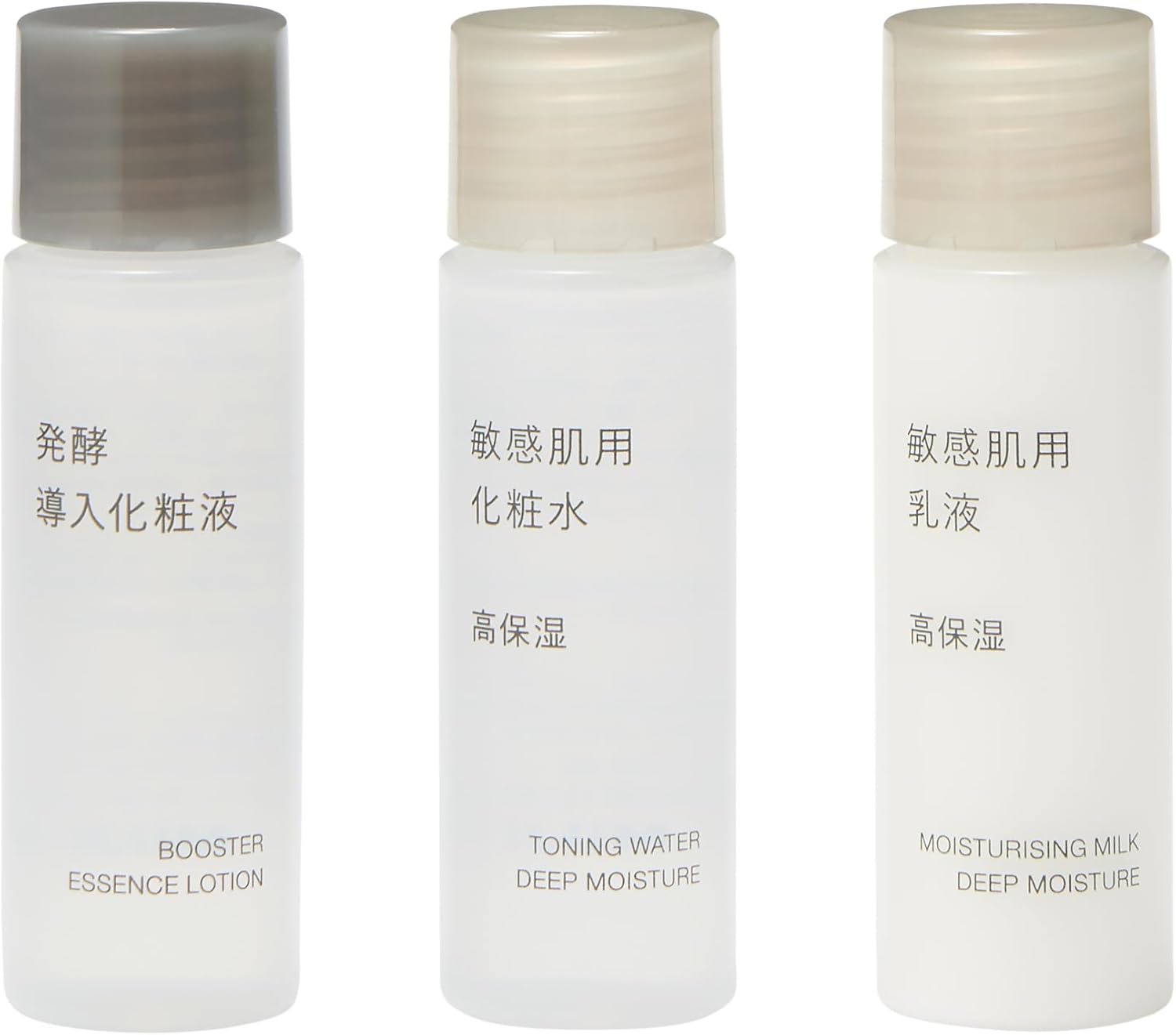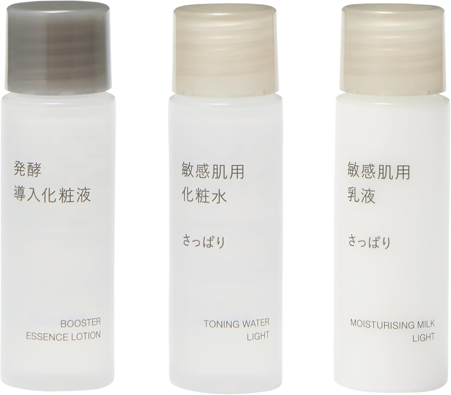 Muji Sensitive Skin Trial Set: Fermentation Essence, Moisturizing Lotion, and Emulsion (20mL x 3)