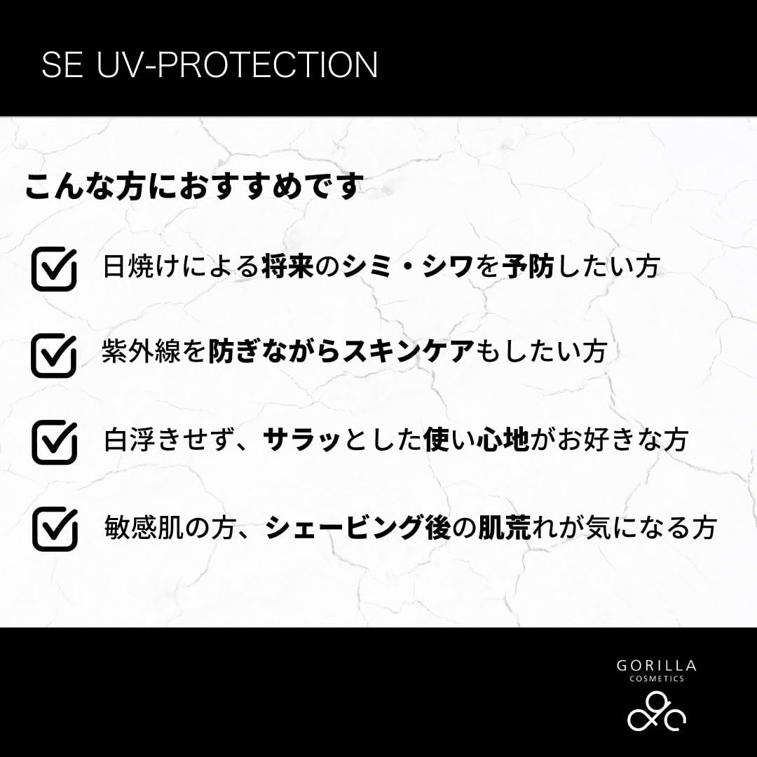 Discover the GORILLA COSMETICS SE UV Protection Sunscreen, specifically designed for men seeking effective skincare. With SPF 35+++ protection and a unique formulation inspired by Japan’s skincare traditions, this 30g sunscreen safeguards against harmful UV rays while promoting a healthy skin microbiome. Infused with calming lavender and geranium essential oils, it not only protects your skin but also soothes stress. Enjoy free worldwide shipping directly from Japan, backed by a 1-month warranty from our trusted vendor. Perfect for all skin types, this sunscreen is your go-to solution for healthy, protected skin every day.
