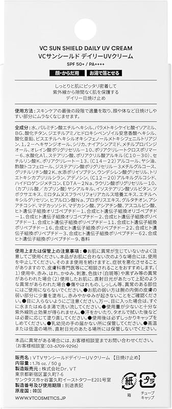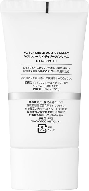 Introducing VTCOSMETICS VC Sun Shield UV Cream, a must-have for radiant, protected skin! This lightweight cream offers powerful SPF50+/PA++++ protection against harmful UV rays, while its unique water-gel formula ensures a non-greasy finish, perfect for daily wear on both face and body. Designed for all skin types and enriched with moisturizing ingredients, it helps maintain a healthy skin barrier. Plus, it's effortlessly removable with just warm water! Shipped directly from Japan, enjoy free worldwide shipping and a 1-month warranty from our trusted seller. Discover the charm of Korean cosmetics today and keep your skin glowing and safe!