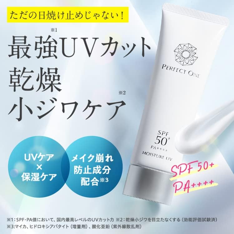 Discover the perfect solution for sun protection with パーフェクトワン SPモイスチャーUV, a premium Japanese sunscreen cream designed for all skin types. This 50g formula not only provides top-level UV protection but also offers a moisturizing effect that minimizes the appearance of fine lines, thanks to its 50 unique hydrating ingredients. Experience lightweight, non-greasy application without the need for cleansing, making it suitable for both face and body. Enjoy free worldwide shipping directly from Japan, along with a 1-month warranty from a trusted seller. Protect your skin daily while indulging in effective aging care!