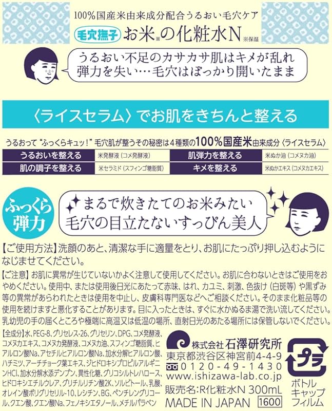 Discover the remarkable skincare benefits of Kanebo's Rice Power Moisture Lotion, specially crafted for individuals with dry skin. This 300ml lotion is formulated using 100% domestically sourced rice-derived ingredients that hydrate, tighten pores, and revitalize your complexion. Bid farewell to parched skin and embrace a more supple, elastic appearance that radiates health and beauty!