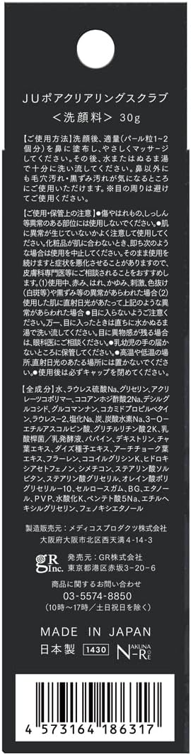 Discover the JUSO KURO Pore Cleansing Scrub, a must-have for anyone seeking clear, glowing skin. This innovative 30g gel combines baking soda and charcoal to gently eliminate pore impurities and blackheads without irritating your skin. Enriched with green tea, soybean, and artichoke extracts, it tightens pores post-cleansing for a refined look. Enjoy the convenience of free worldwide shipping directly from Japan, and shop with confidence knowing you’re covered by our 1-month warranty. Experience the unique benefits of Japanese skincare today and say goodbye to stubborn pore dirt!