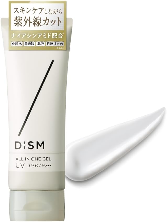 Discover the DISM All-in-One UV Gel, specially designed for men who care about their skin. This innovative 4-in-1 formula combines a moisturizer, serum, sunscreen (SPF 30), and lotion, all in a convenient 70g gel. Enriched with 5% niacinamide and calming floral fragrance, it protects against UV rays and dryness while offering a light, non-greasy feel. Enjoy free worldwide shipping from Japan and peace of mind with a 1-month warranty. Perfect for all skin types—oily, dry, sensitive, or combination—this gel is your new morning essential for a refreshed and protected complexion.