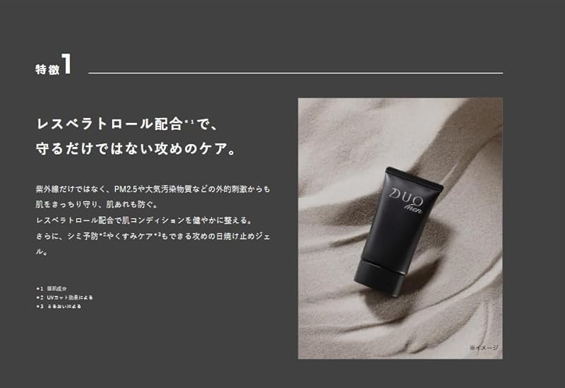 Introducing the DUOmen UV Protector, designed specifically for men seeking effective sun protection without compromising their skin's health. With SPF 50+ and PA++++, this gel sunscreen shields against harsh UV rays while hydrating and revitalizing dry skin, making it perfect for everyday use. Enriched with powerful ingredients like resveratrol and marine plankton extract, it not only defends your skin but also enhances its elasticity. Enjoy free worldwide shipping from Japan and a 1-month warranty, ensuring your purchase is as secure as it is reliable. Experience the ultimate in skincare that keeps you looking youthful and fresh, whether at home or on the go!