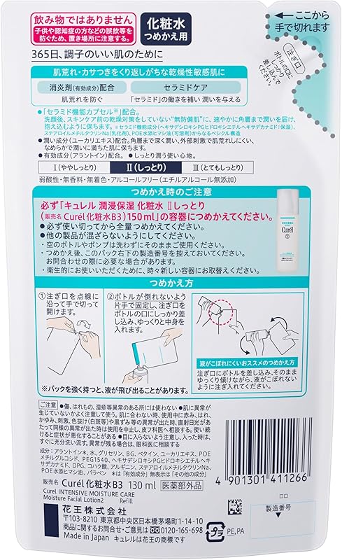 Discover the ultimate hydration solution with Curel Moisture Lotion II (Shittori) Refill, 130ml — perfect for sensitive skin! This low-irritant formula, enriched with eucalyptus extract, provides deep moisture and soothes delicate skin. Enjoy **free worldwide shipping** straight from Japan, ensuring you receive authentic quality. With a 1-month warranty and a trusted seller based in Japan, this fragrance-free lotion is designed for those seeking gentle yet effective care. Say goodbye to dryness and embrace a smoother, healthier complexion. Ideal for daily use, it's a must-have addition to your skincare routine!