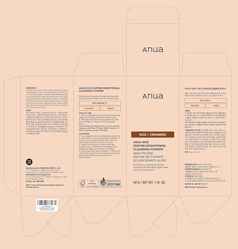 Experience the luxurious essence of traditional Japanese skincare with ANUA's Rice Brightening Enzyme Cleansing Powder. This finely milled powder, enriched with the revitalizing properties of rice, is designed to gently cleanse, exfoliate, and illuminate your skin. With consistent use, it enhances your complexion, leaving it bright, smooth, and rejuvenated. Perfect for daily cleansing or as an indulgent treatment, this formula effectively targets blackheads and uneven texture, establishing itself as an essential addition to your skincare routine.
