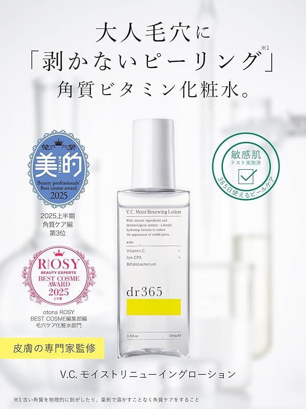 Discover the dr365 V.C. Moist Renewing Lotion, a premium Japanese skincare solution designed for sensitive skin. This vitamin C-infused toner, featuring a unique non-peeling formula and peptide technology, gently exfoliates and hydrates while addressing enlarged pores and fine lines. Enriched with Bifidus culture water, it promotes a smooth, youthful complexion without synthetic fragrances or colors. Enjoy free worldwide shipping directly from Japan, along with a 1-month warranty for your peace of mind. Transform your skincare routine with this elegant lotion, perfect for daily use and effective all year round!