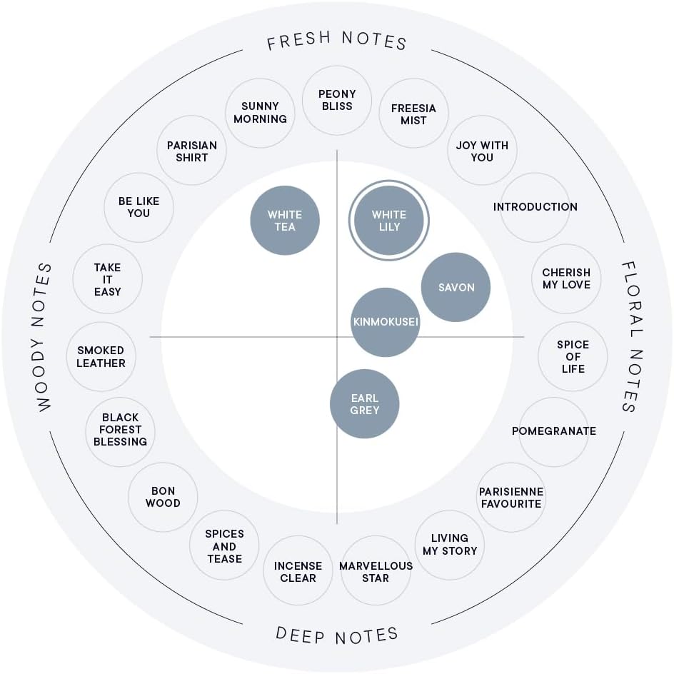 This carefully crafted fragrance is formulated to amplify the soft allure of lily while incorporating additional floral elements. The result is a beautifully rounded aroma that complements your individuality, allowing you to express your aspirations and inner self with each spritz.