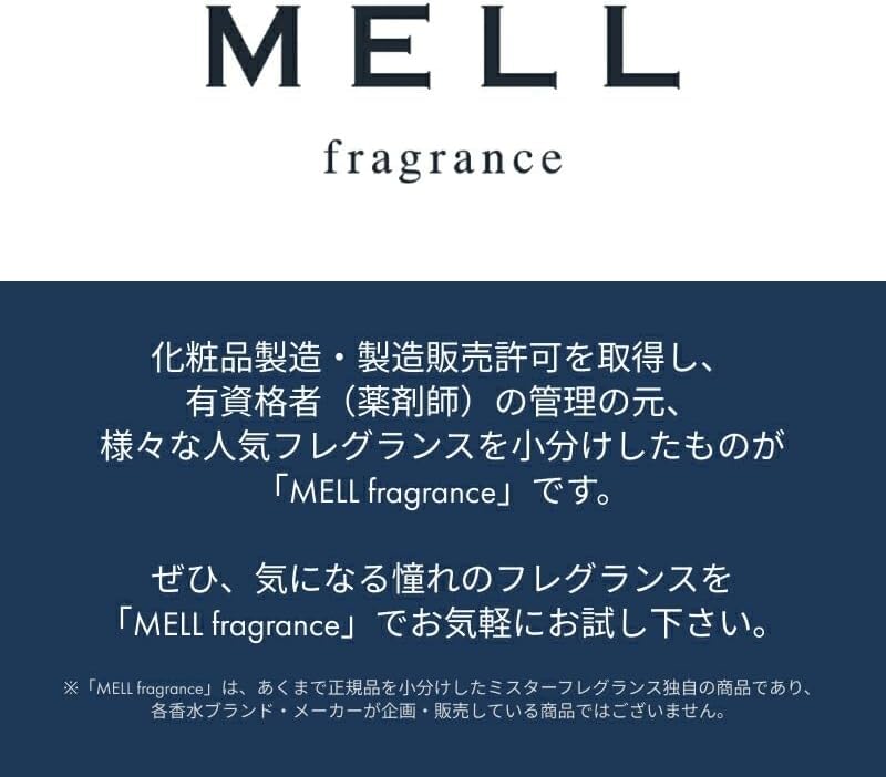 MELL Fragrance is your go-to source for premium perfumes in accessible sample sizes. Each fragrance is carefully prepared under the supervision of certified pharmacists, allowing you to indulge in the scents you've always dreamed of at an affordable price. Please be advised that MELL Fragrance offers officially packaged perfumes that have been divided into smaller quantities, ensuring that you receive authentic products without the brand mark-ups.