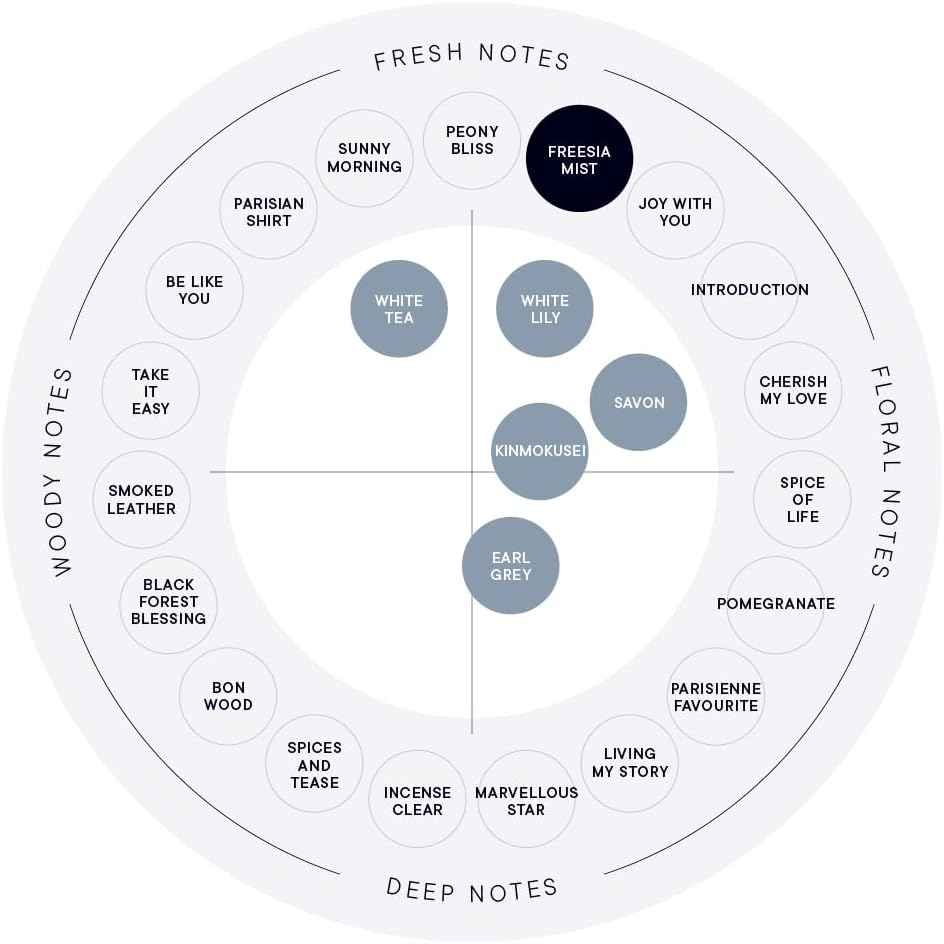 The scent of Freesia Mist is a beautiful ode to floral fragrances, characterized by its light and airy aroma. The fragrance journey begins with vibrant and fresh floral notes that awaken the senses, gradually evolving into a soothing base that emphasizes balance and harmony. This gentle transition creates an essence that is both youthful and sophisticated, making it an exquisite choice for individuals who adore the delicate nature of floral scents.