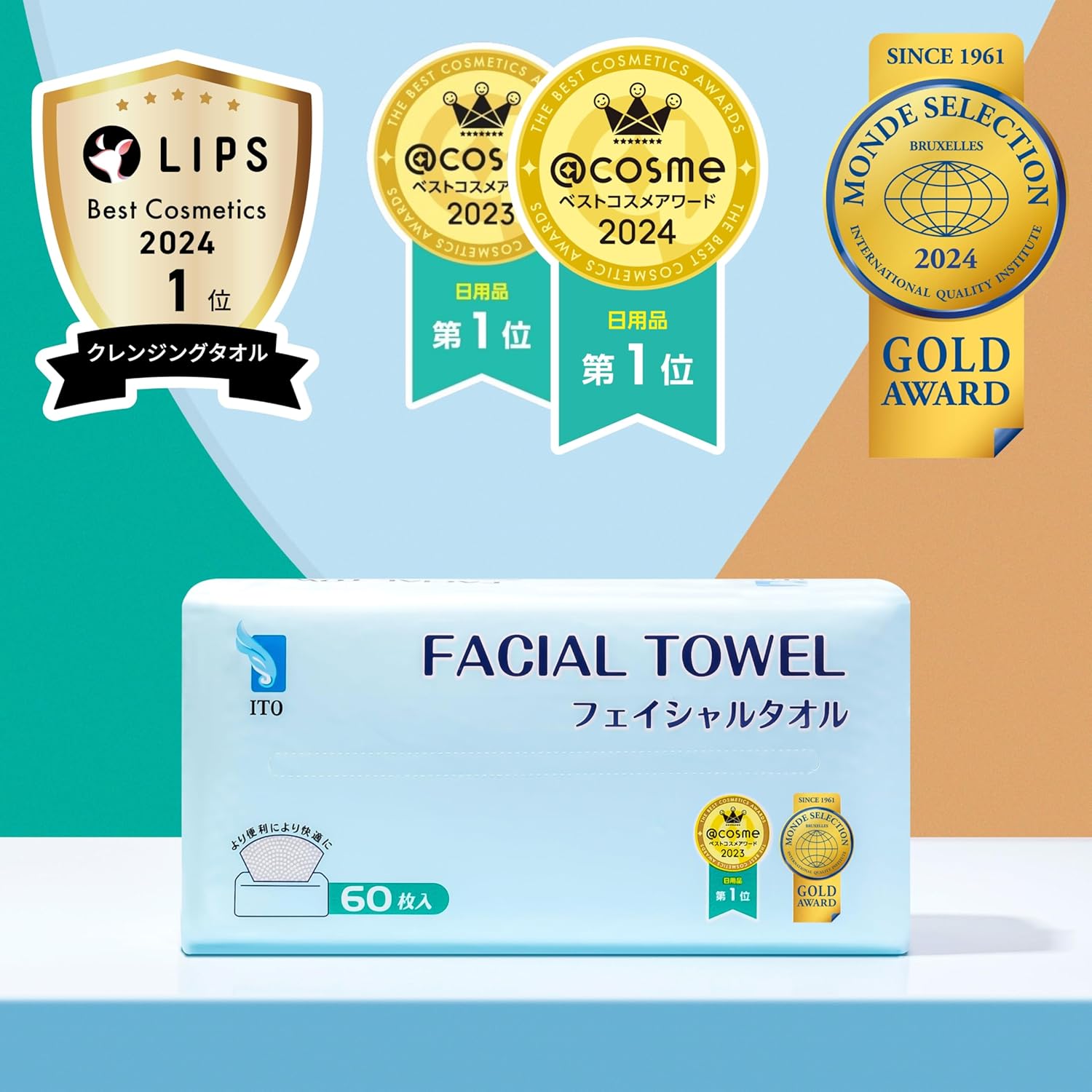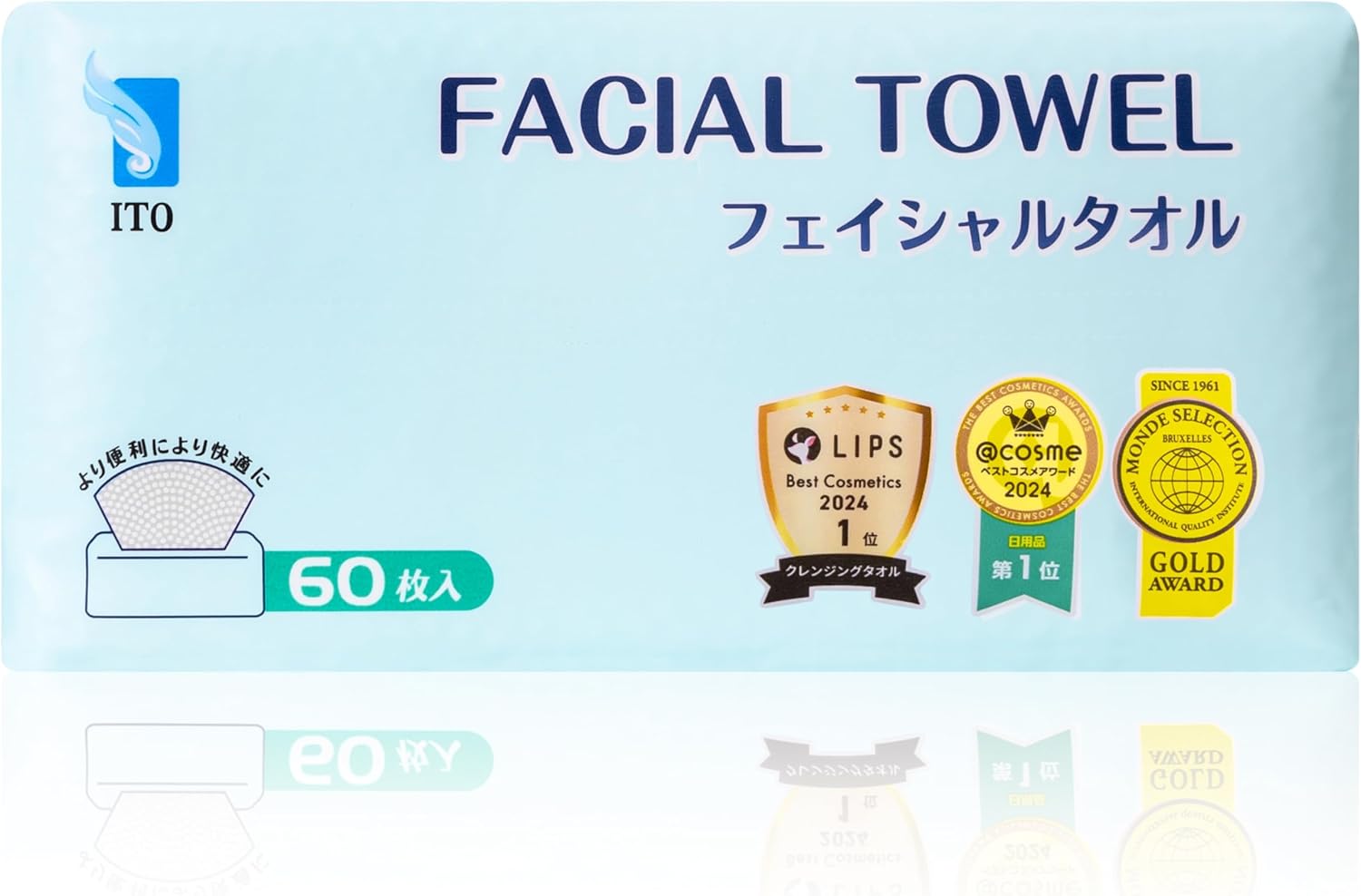 ITO Facial Cleansing Towels - Disposable Skin Care Towels, 60 Sheets per Pack, Set of 3, Oeko-Tex® Certified, Gentle for Sensitive Skin
