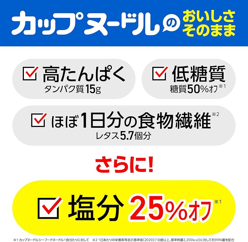 Discover the ultimate guilt-free comfort food with Cup Noodles PRO Seafood Noodle, now featuring high protein content and lower carbs! Each serving contains 15g of protein, reduced sugars by 50%, and a 25% cut in salt, all while maintaining that delicious taste you've come to love. Shipped directly from Japan with the assurance of a 1-month warranty and free worldwide shipping, this 12-pack offers a convenient way to enjoy a savory meal anytime. Whether you're health-conscious or just craving noodles, this enhanced Cup Noodles option won't disappoint!