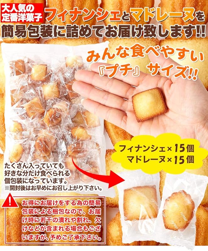 - Variety Pack: 30 treats consisting of 15 Financiers and 15 Madeleines for a perfect tasting experience.