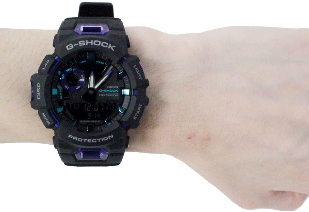 The GBA-900-1A6 boasts an eye-catching color scheme of black and purple, giving it a modern yet striking appearance. The dual analog-digital display provides both a traditional feel and a high-tech interface, ensuring you can read the time quickly and efficiently. The durable resin band combines comfort and functionality, making this watch suitable for both casual and active settings.