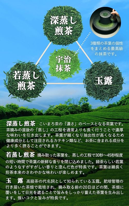 - Unique Blend: Koi Maro Tea features a harmonious mix of three distinct tea varieties: fragrant young steamed sencha, rich deep steamed sencha, and premium gyokuro. This combination enhances the individual qualities of each leaf, resulting in a beautifully balanced cup of tea.