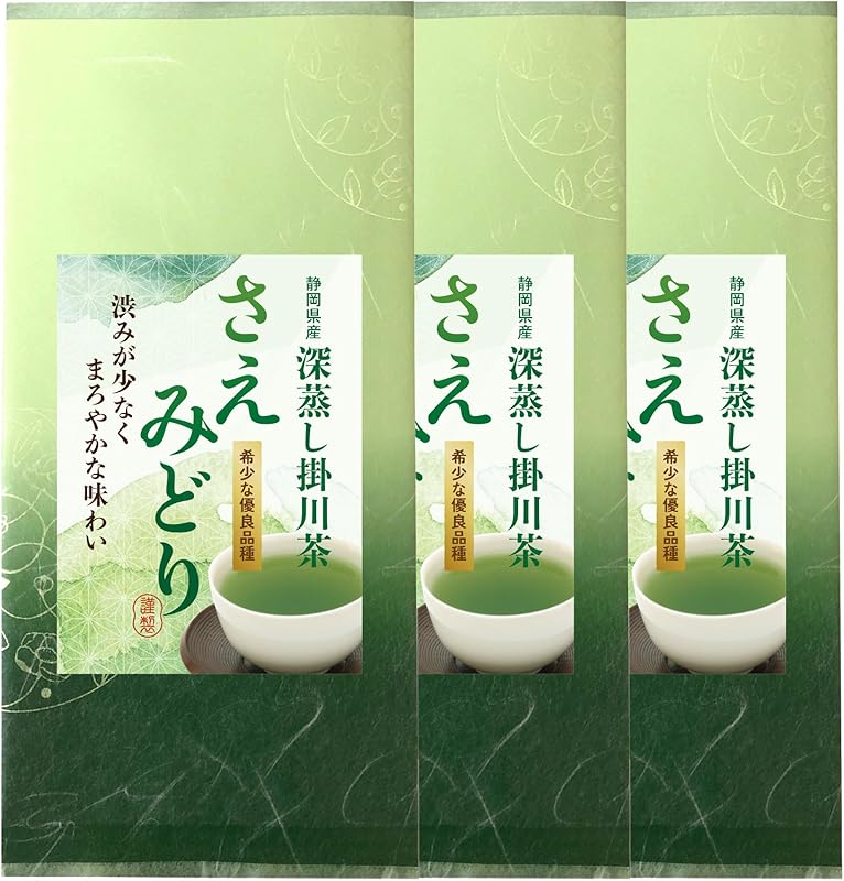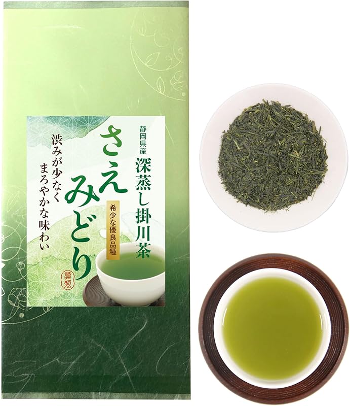 Delve into the exquisite world of Deep Steamed Kakegawa Tea, a premium green tea blend crafted from the rare Saemidori variety. Sourced exclusively from the picturesque Shizuoka Prefecture, this unique tea offers tea connoisseurs a smooth, rich taste characterized by minimal astringency. It is a treasured addition to any tea enthusiast's collection, celebrated for its vibrant green color and elegant flavor profile.