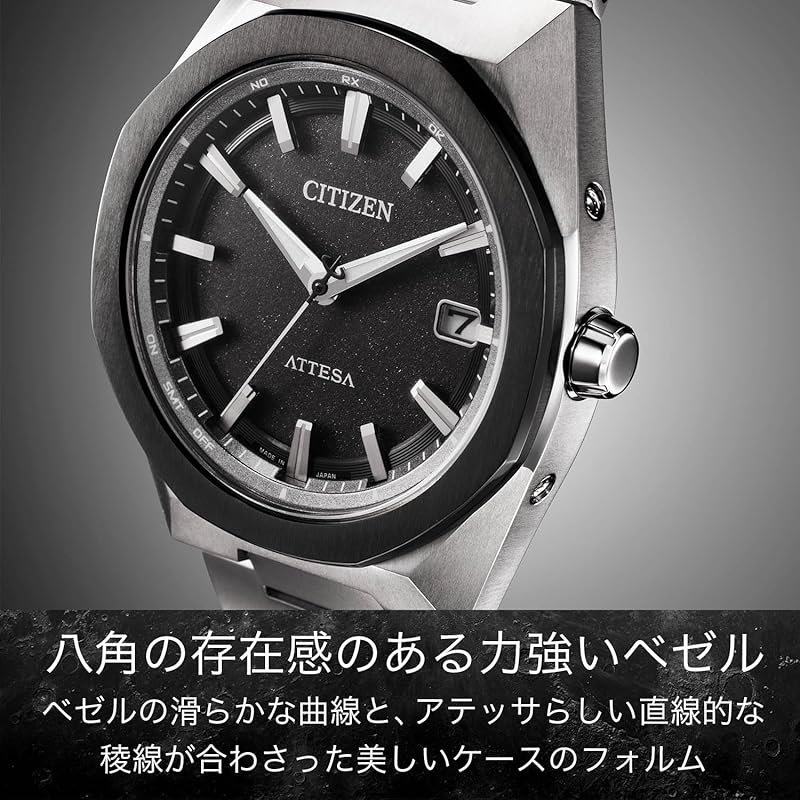 Citizen Attesa Eco-Drive Radio-Controlled Water-Resistant Business Watch with Octagonal Bezel for Men
