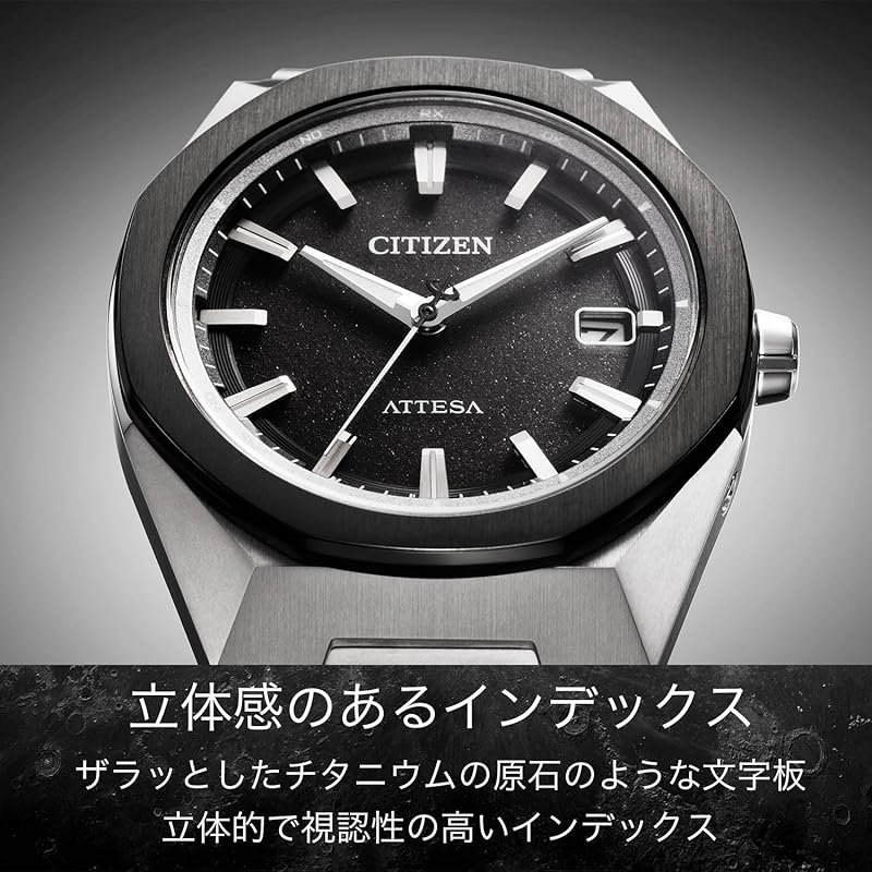 The Citizen Attesa features a stunning octagonal bezel, the centerpiece of its captivating design. This geometric elegance not only draws the eye but also adds a layer of complexity to your look, truly making it an accessory for the discerning gentleman. The understated yet bold three-hand display enhances the watch's sophisticated appearance, while the silver titanium construction ensures a lightweight feel that does not sacrifice durability.