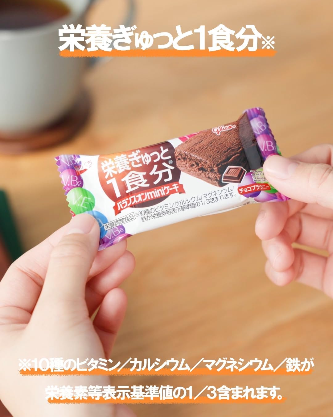 Balanced Mini Cake Snack - Chocolate Brownie Flavor, 20 Individually Wrapped Treats - Nutrient-Rich Snack Option by Ezaki Glico