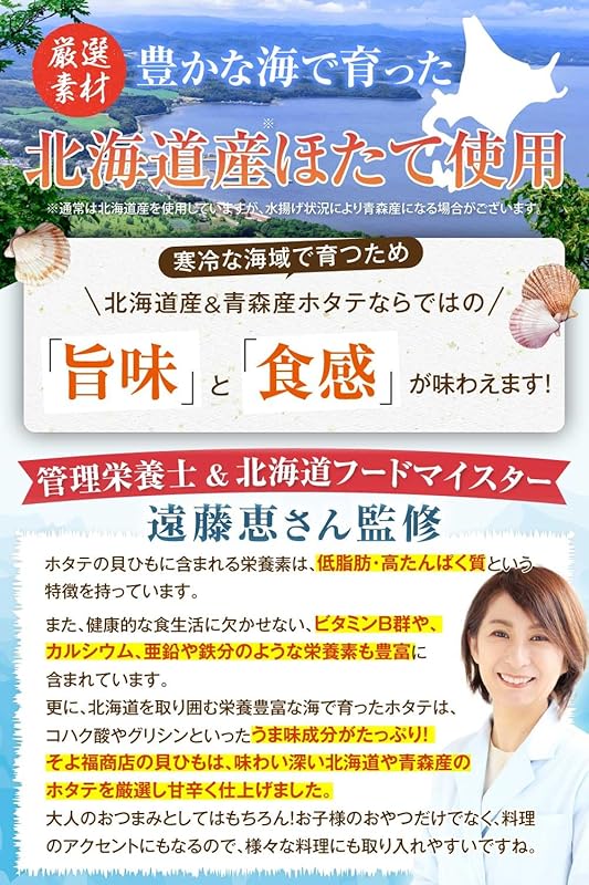 Crafted under the expert guidance of a certified nutritionist and a food maestro familiar with the culinary delights of Hokkaido, these scallop strips are not only delicious but also nutritious. Enjoy them as-is or incorporate them into various dishes. Here are some suggestions for use: