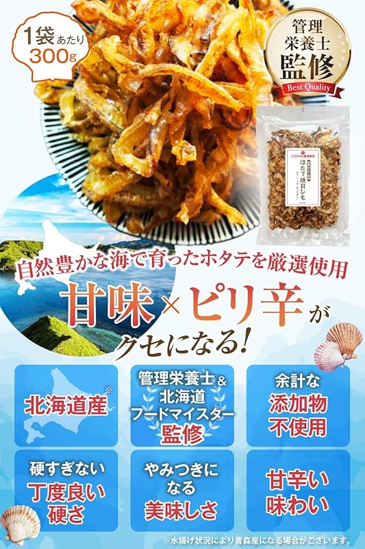 Discover the tantalizing taste of our Hokkaido Scallop Strips (300g), expertly curated by food masters and dietitians. Made from premium, domestically sourced scallops from Hokkaido and Aomori, these addictive snacks feature a unique blend of sweet and spicy flavors, perfect for pairing with drinks or satisfying those snack cravings. With no unnecessary additives and free worldwide shipping from Japan, you can enjoy this nutritional powerhouse, packed with essential minerals like taurine and zinc, worry-free. Plus, each purchase comes with a one-month warranty, ensuring your satisfaction with every bite!