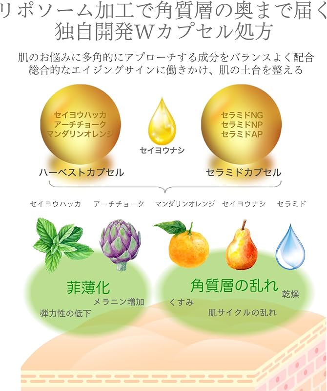 Harness the advanced science of skincare with Racosie's unique Double Capsule technology. This method combines extracts from Mandarin Orange, Peppermint, and Artichoke, along with three types of ceramides. This dynamic blend penetrates deeply into your skin, helping to prevent roughness and delivering hydration, firmness, and an enhanced youthful glow. Enjoy the advantages of intense moisturization and superior skincare with every application.