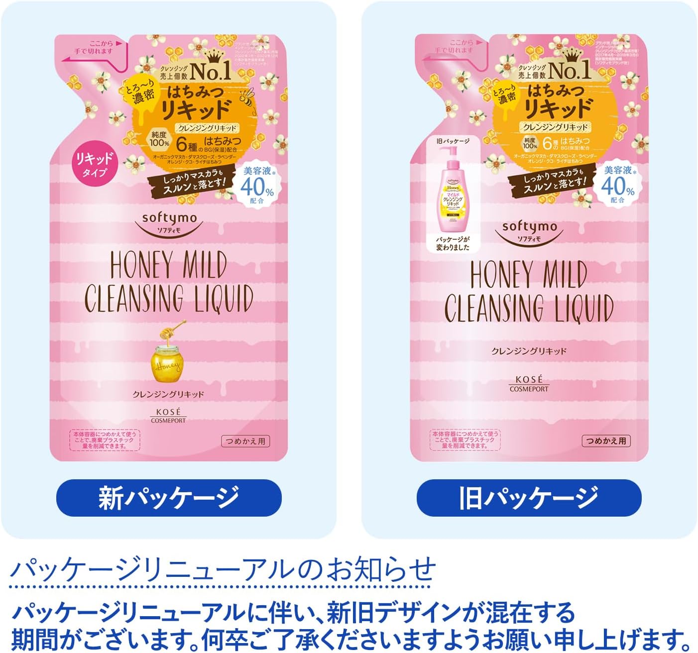 Softymo Kose Cleansing Liquid (Honey Mild) - Refill Pack 200mL with Pore Pack Bonus