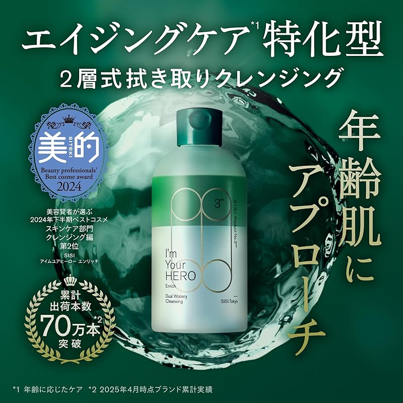 Experience the remarkable cleansing power of SISI's "I'm Your Hero" Enrich Cleansing Water with a refreshing woody scent. Ideal for all skin types, this innovative formula combines 97% plant-derived ingredients, including niacinamide and bakuchiol, for effective anti-aging care. With five functions in one bottle—cleansing, face wash, toner, serum, and pore care—this time-saving solution is perfect for busy lifestyles. Enjoy free worldwide shipping directly from Japan, backed by a 1-month warranty. Elevate your skincare routine with a luxurious experience that brings the tranquility of a forest right to your home.