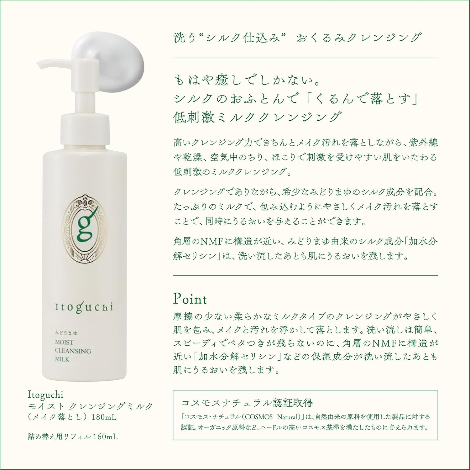 Discover the Itoguchi Midori Mayu Moist Cleansing Milk, a luxurious skincare essential crafted from 100% natural ingredients and featuring rare silk proteins. Perfect for all skin types, this organic, low-irritation cleansing milk gently removes makeup while providing deep hydration. Enriched with a unique citrus fragrance, it transforms your cleansing routine into a soothing experience. Enjoy the convenience of free worldwide shipping and trust in our one-month warranty, all from our base in Japan. Embrace the essence of Japanese skin care and indulge your skin with this exceptional product that beautifully balances cleanliness and nourishment.